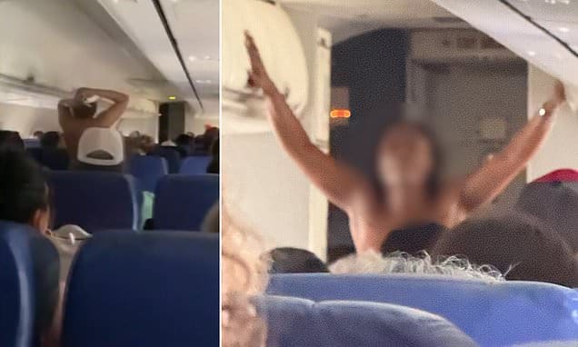 ASouthwestflightwasforcedtoreturntoitsgateafterafemalepassengerrannakedupanddownitsaislefor25minutes.  ThemomentcameduringaflightfromHouston’sWilliamP.HobbyAirporttoPhoenixonMondaywhenthewomanstrippednakedinfrontofstunnedpassengers.  FootagetakenbyBeastGamescontestantMacyEstevez,andfirstsharedbyABC13,showedthewoman,whohasnotbeennamed,bareherbreastsasshegyratedbeforethecabinoftheBoeing737.  Estevezreportedlysaidshecontinuedparadingonboardfornearlyhalfanhourbeforeauthoritiessteppedinanddetainedher.  TheHoustonPoliceDepartmenttookthewomanawayformedicalevaluations,howeverthedepartmentdidnotsayifitwouldbebringingcharges.  Inastatement,SouthwestAirlinesconfirmedtheincidentasitapologizedtopassengersforthebizarredisruption.  ‘LocallawenforcementmetFlight733fromHoustontoPhoenixMondayafternoonafteritreturnedtoth