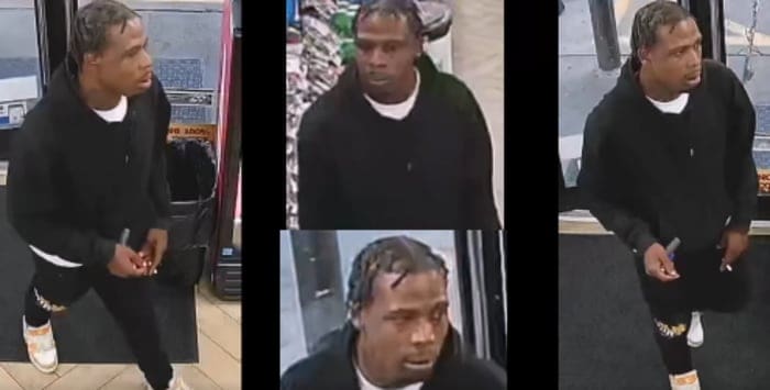 On January 1, 2025, around 7:15 a.m., a man walked into a gas station in the 3200 block of South Loop West, grabbed several packs of cigarettes, and overpowered the clerk when confronted. Moments later, he returned to steal more items before leaving in a white Pontiac G6.