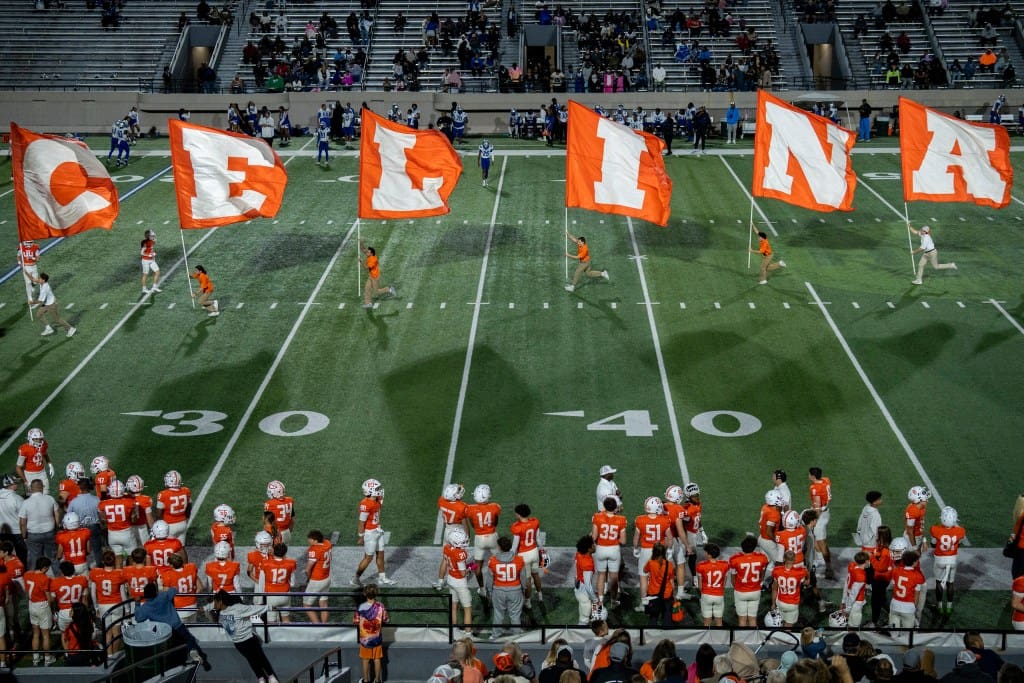 The top-ranked Celina High School football team is barrelling toward another state championship this month. Its coach is barred from the field.—